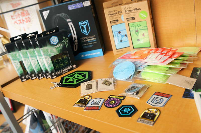 先行してリリースされたリアルワールドゲーム『Ingress』のグッズ。エネルギーをテーマとしたSF的な世界観が演出されている