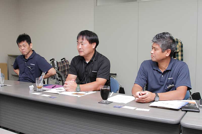 開発部の廣瀬技師(左)、営業を担当する堀野主任(中央)、そして開発部の無津呂課長