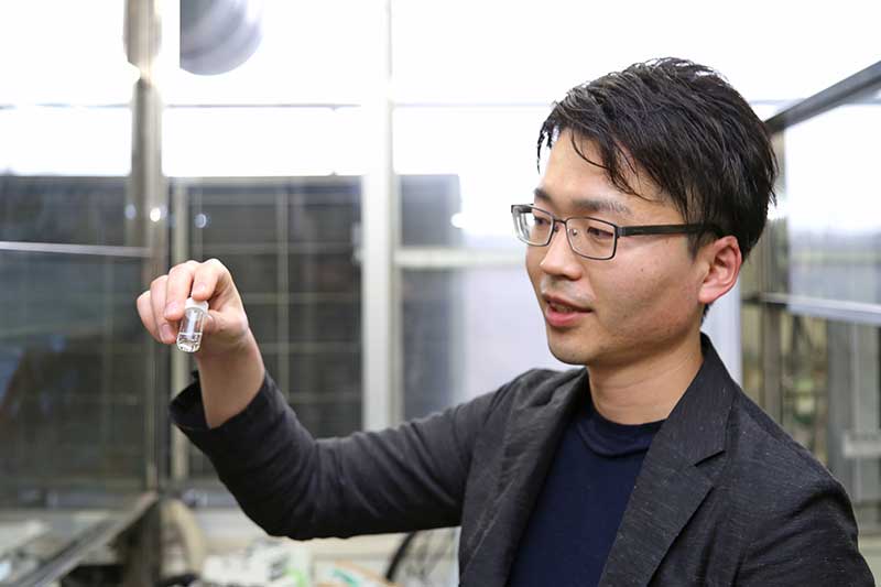 将来、どんな場所でも作ることができる実現可能性の高さも視野に入れて、最適な構造の高分子を探し求めたという野本助教