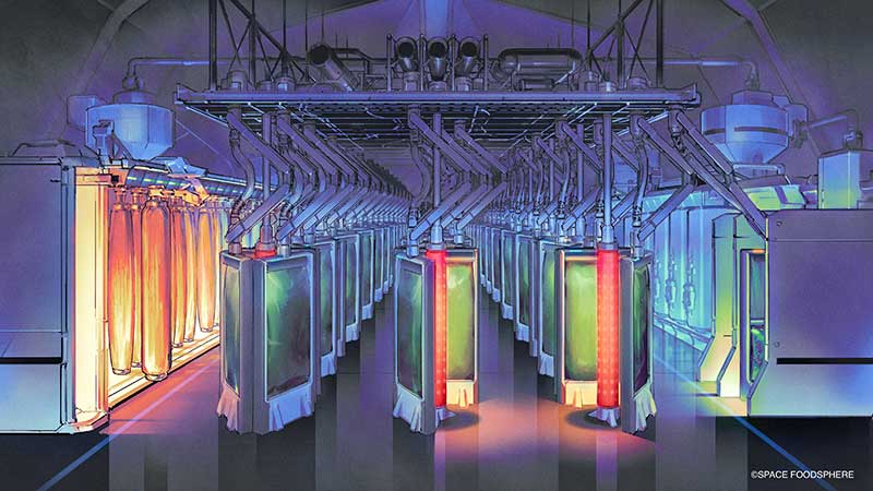 こちらは細胞培養肉、微細藻類などを生成する装置群のイメージ。タンパク質となる食料を育てるのではなく、製造するという時代が来るかもしれない