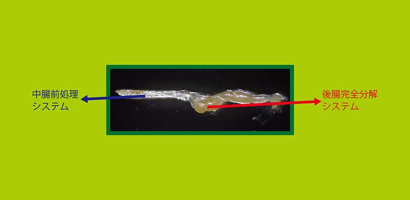 体の中に「臼」があるとはなんともユニークだが、シロアリのバイオマス利用で注目したいのは中腸から後の消化工程だ。