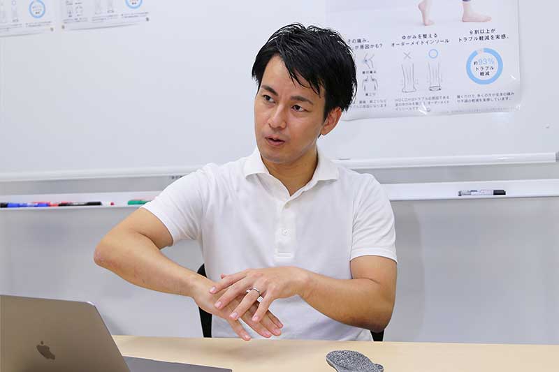 医学部を卒業後、総合診療医として勤務。その後、大学院に進んで先進予防医学を学んだ岡部大地氏。足専門のクリニックと出合ったことがHOCOH開発のきっかけとなった