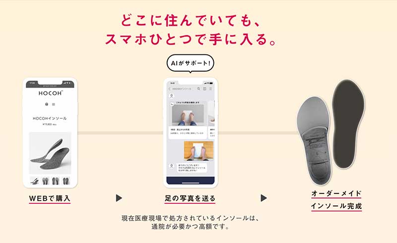 自宅にいながらオーダーメードのインソールを作れるサービスを実現した「HOCOH」。カメラ付きのスマホさえあれば注文できる