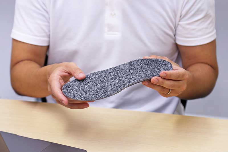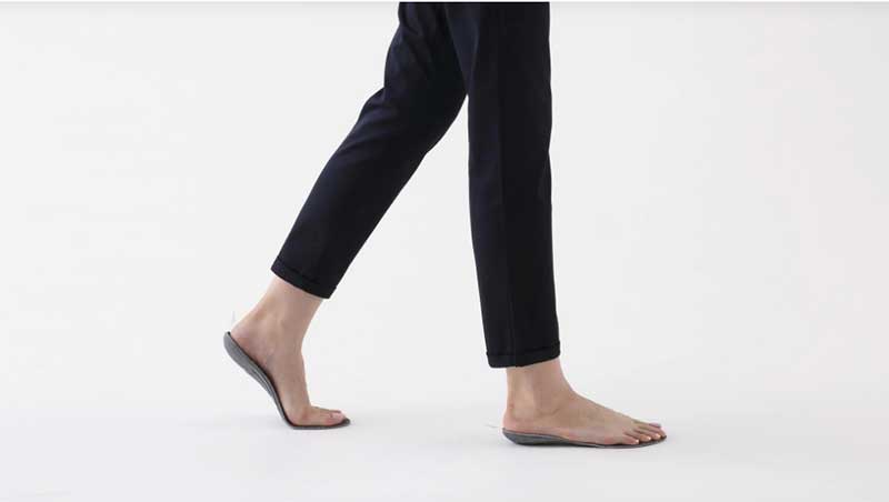 「それはもう、劇的に変わるはずです。私自身が毎日使用しているので、自信をもって言えます。足は片足につき28個もの骨で構成される複雑な構造をしていますが、形は人それぞれ。しかも、歩き方や姿勢など生活習慣によってゆがみやすい部位でもあります。筋骨格のバランスが崩れていると歩行時の負荷が大きくなることは、容易に想像できるでしょう。ところがインソールを装着して足裏の形を整え、最初に接地する部分を変えてあげることで、スムーズに動くようになるのです」