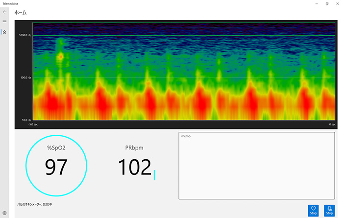 医師の判断指標として活用できるスペクトログラム。心音の周波数と音圧、時間などを落とし込むことで、心音を視覚的に確認できるようにした