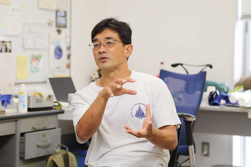 「解明されていないことが多い分野だからこそ、挑戦してみたい」という動機で海洋物理学の研究者になる道を選んだという岡准教授