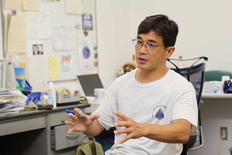 「亜熱帯モード水の物理的な循環の仕組みと、化学的な変動を明らかにするのが喫緊の課題、目標です」と語る岡准教授