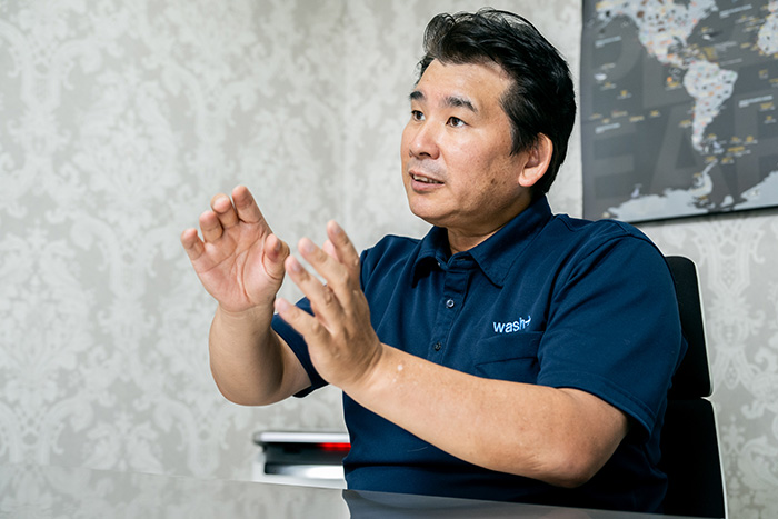株式会社wash-plusは、東日本大震災の際に創業の地である千葉県浦安市が断水被害に遭ったことを機に事業を立ち上げて以来、水問題へのアプローチも積極的に行ってきた。2022年には、従来の“洗剤レス”に加えて、特殊装置で水をろ過・循環させる“排水レス”店舗の実証実験を開始。ろ過が難しい洗剤を使わないからこそ挑戦できるプロジェクトだ。