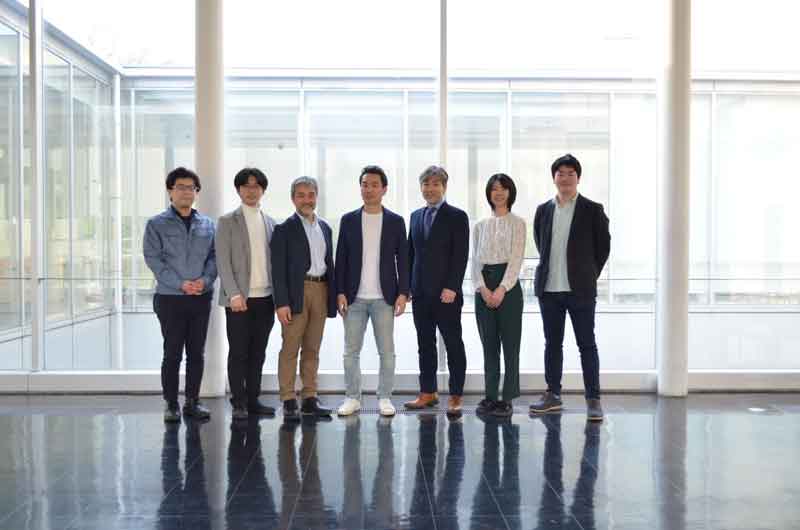 LINEAイノベーションのチーム一同。野尻氏(中央)の右が浅井教授、左が坂本教授