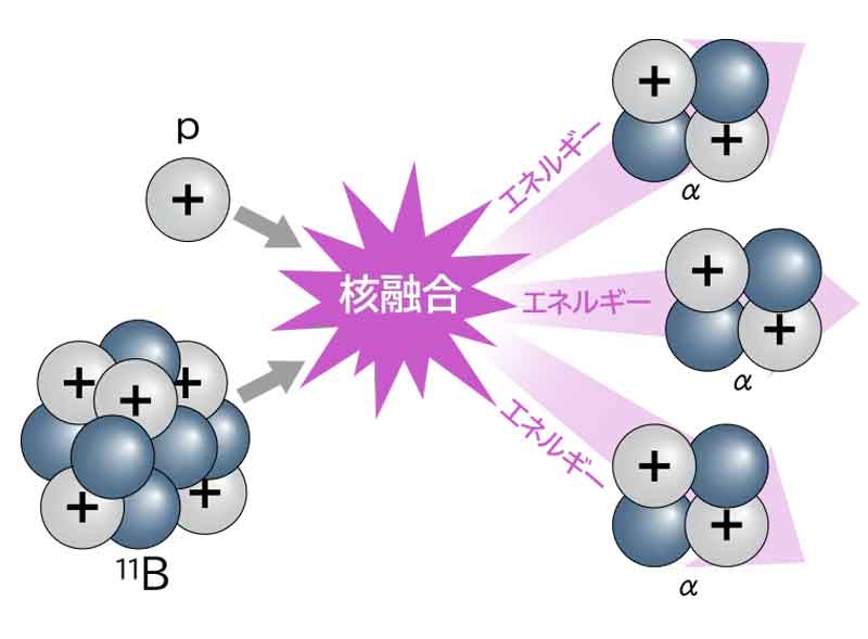 具体的には軽水素(H、またはp)とホウ素(B)の同位体であるホウ素11(11B)を燃料にした「プロトンボロン反応(p-11B反応)」の実用化に挑んでいる。