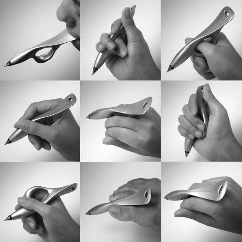 握力の弱い人にも使いやすいボールペン「ハンディ・バーディ」、流線型で利き手を選ばずに多様な握り方を発見できる筆記具「U-WING」(画像)など、トライポッド・デザインはさまざまなユニバーサルデザインのアイテムを開発してきた