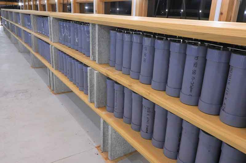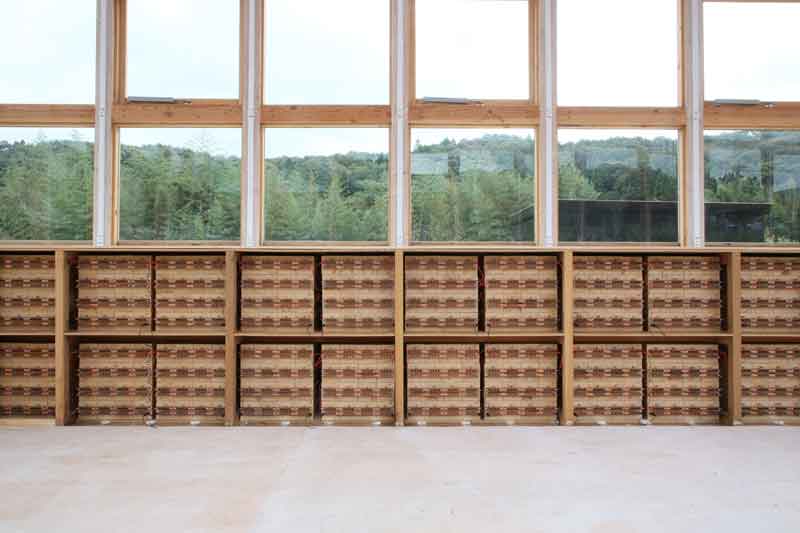 「KU-AN 空庵」内部は、土と集電材からなる集電装置(集電セル)が無数に並ぶ。「集電セルは一つ一つが手作り。現地の皆さんと地元の土を詰めて製作しました」(中川氏)