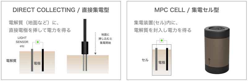超小集電の技術構造は、電極を直接電解質に挿すことで電力を得る「直接集電技術」と、セル(電池)の中に電極と電解質を詰め込んで集電する「集電セル型」の2つの技術領域が存在する