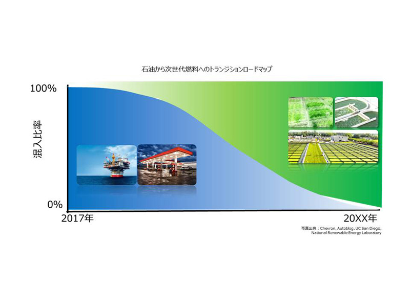 「ただし、これもいきなりゼロから100への転換ではなく、最初は既存の燃料にバイオ液体燃料を混合し、徐々にその混入割合を高めていくロードマップを描いています」