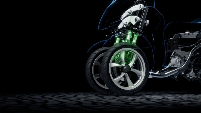 「LMWとはLeaning Multi Wheelの略です。左右に並んだ車輪を平行四辺形リンク(部品の動きを連動させるための機構)でつなげることで、3輪や4輪でもバイクのように車体を傾けて(リーンさせて)旋回できるようにしたサスペンション機構の一つ。LMWによって、バイクの機動性と優れた安定感を兼ね備えた乗り物が実現できるようになります」