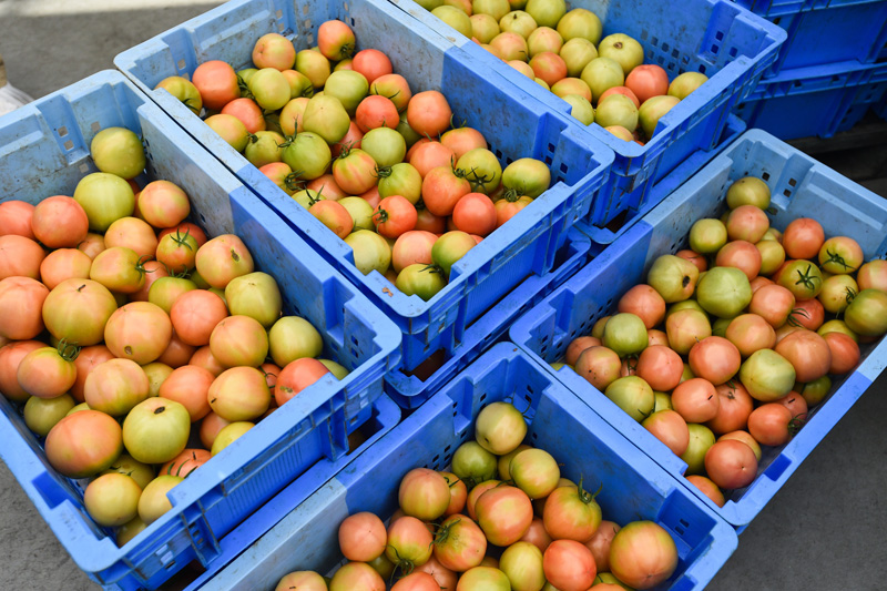収穫したトマトは放射能検査を受けてから市場に出荷される