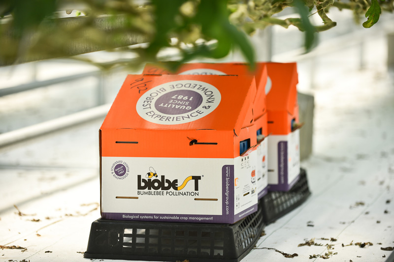 一方で、風のない環境でも自然に受粉が進むように、ハウス内には蜂の巣箱が点在している。人工授粉作業に必要な人件費の削減になるだけでなく、蜂を殺すほどの農薬は使えないためトマトの安全性も担保できる。