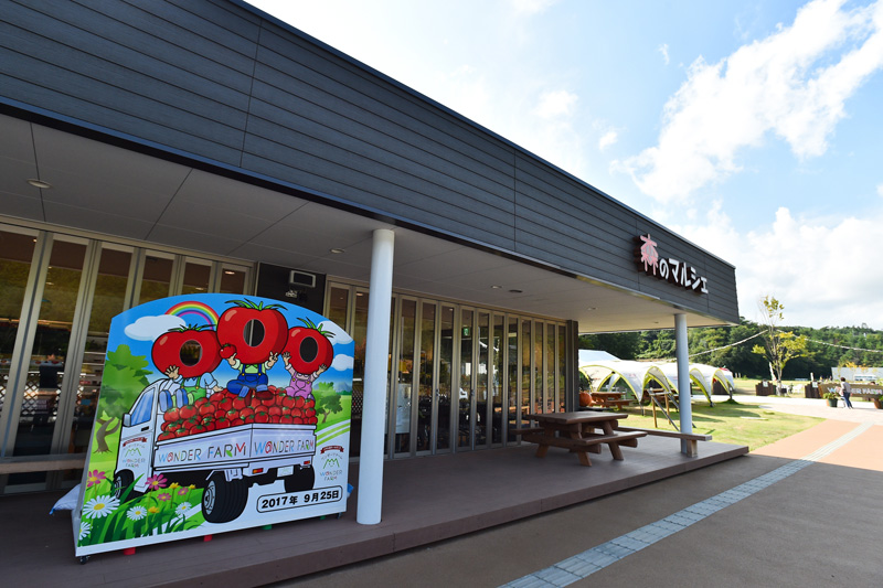 里山に隣接する「ワンダーファーム」は、トマト栽培用の最先端ハウスやトマトジュースを作る加工工場などを併設する、“トマト尽くし”のテーマパークだ。