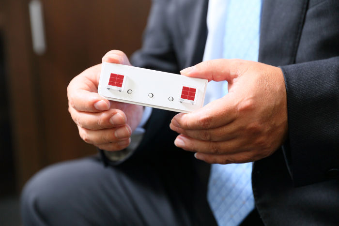 「モバイル機器の通信は、Wi-FiやBluetoothなどワイヤレスになっていますが、電源の供給はコードにつながなければなりません。しかし、光エネルギーと太陽電池をうまく活用できれば、完全なワイヤレス化が実現できます」