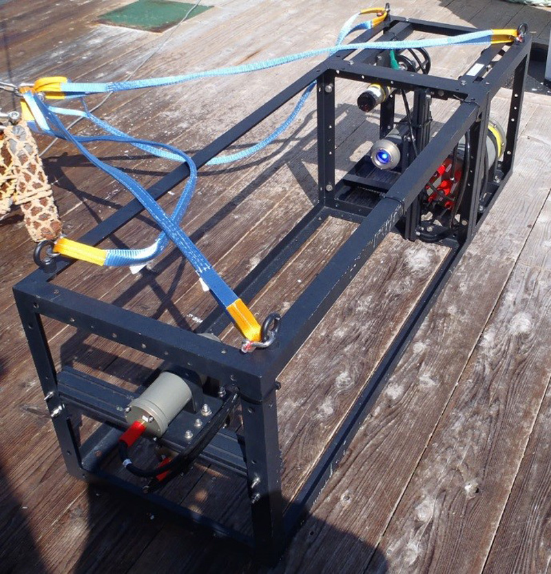 実験では水中における光の透過度などを計測し、水中光無線通信で用いる光の波長や通信速度の最適値を算出するための海域基礎データ取得装置も搭載 画像提供:JAMSTEC
