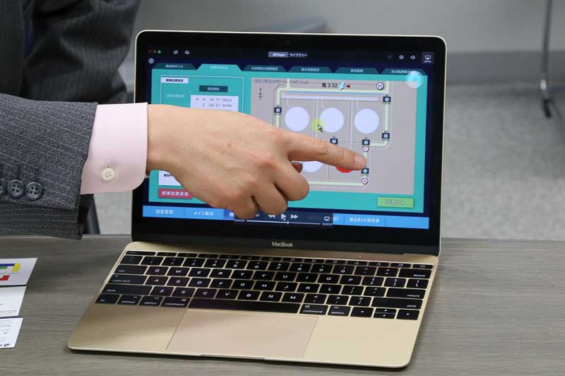 天野氏はモニターに石油コンビナート火災でのオペレーションを想定したCG映像を映しながら解説してくれた。