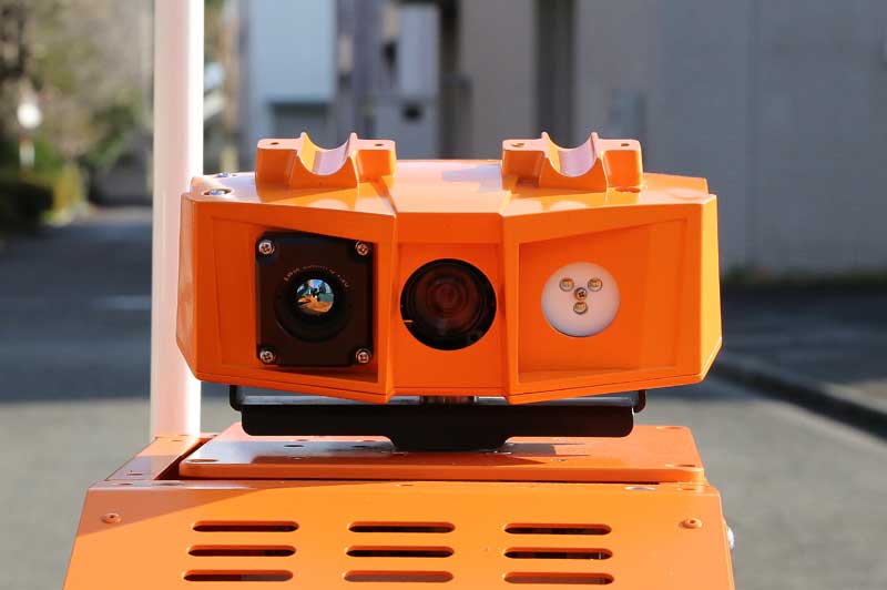 走行型偵察監視ロボットの前面には可視画像カメラ、熱画像カメラのほか、温度センサー、放射熱センサー、可燃性ガス検知センサーなどを搭載