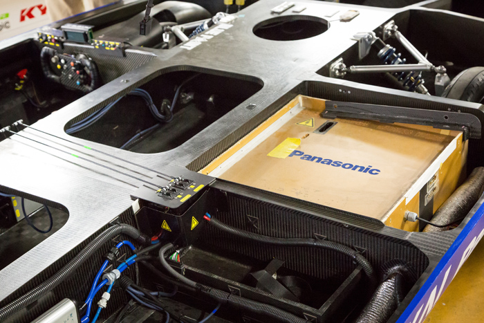 ソーラーパネルを取り付けた車体上部を外すと、中にあるのはバッテリーのみ。F1マシンと同じように、快適さを追求した機能は一切ない