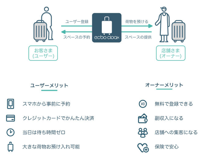 荷物を預けたい人と余剰スペースを持つ店がウィン-ウィンとなる荷物預かりビジネス