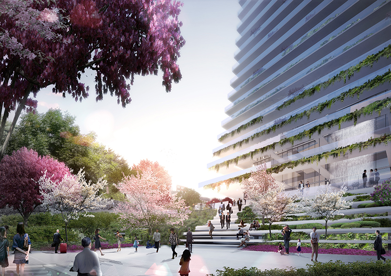 職、住、遊、商、学、憩、文化交流など、さまざまな機能がコンパクトに集約された「ヴァーティカルガーデンシティ(立体緑園都市)」実現させようとしている。