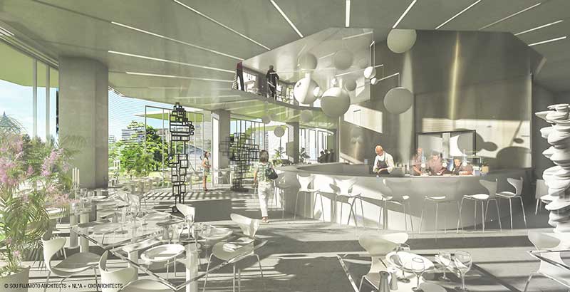 パブリックに開かれたルーフテラスのある最上階にはパノラマビューのカフェが設けられている (C)SFA+NLA+OXO+RSI