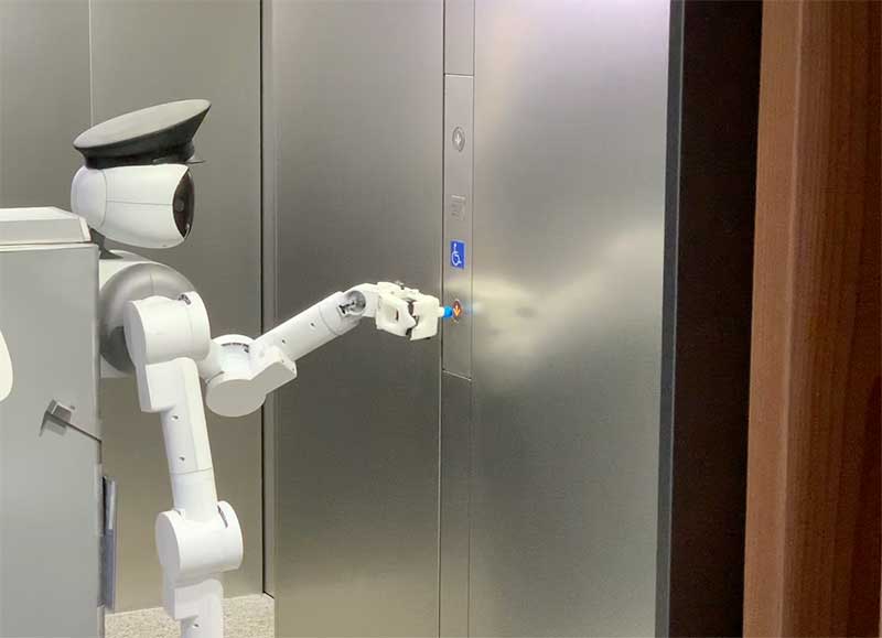これによって、肘をビシッと曲げた敬礼のポーズが美しく決まる……だけではなく、落とし物を拾ったり、ドアノブをつかんで施解錠を確認したり、トイレ清掃を任せることもできる。来客とのコミュニケーションに特化した既存のロボットと比べると、臨機応変にマルチタスクに対応できることが最大の強みだ。