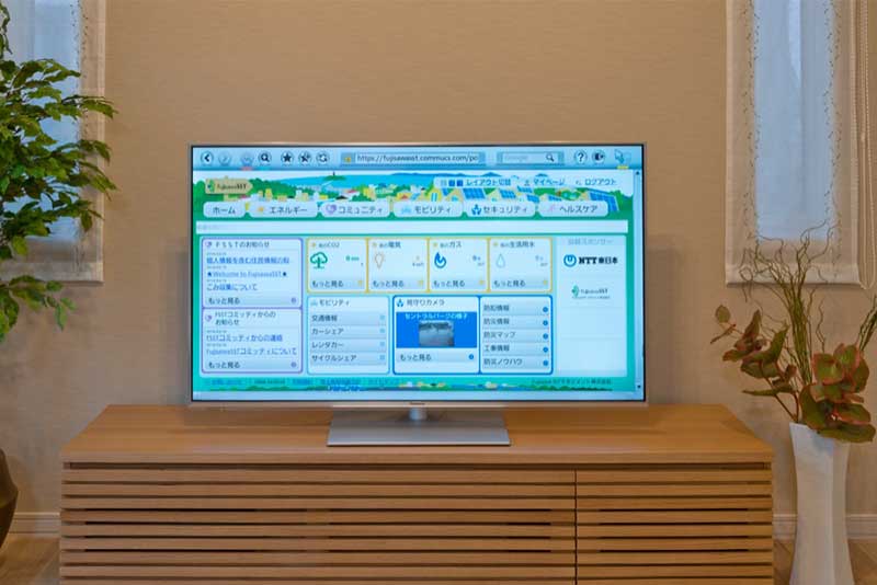 全ての戸建て住宅にスマートテレビが設置されており、住民専用の掲示板機能「タウンポータル」で使用電力や街の情報を確認できる