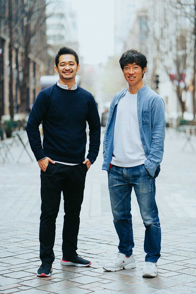 福島氏(左)は北海道札幌市出身で、雪山で育ち、スキーとラグビーをこよなく愛する。一緒に写るのは同社ファウンダー兼ブランドディレクターの本間貴裕氏
