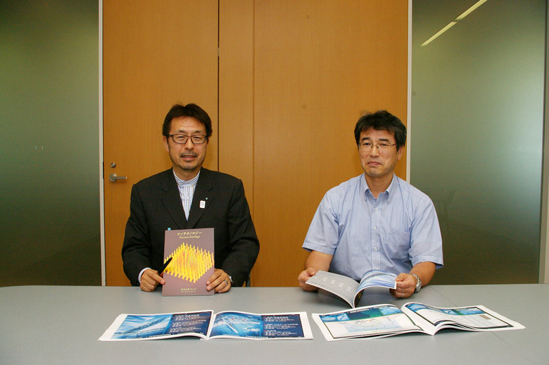 空中都市構想『FUWWAT2050』は、広報誌『季刊大林』54号の企画として発表された。葛西秀樹さん(左)は構想の全体をまとめ、渕田安浩さん(右)はナノテクノロジーによる材料の可能性に取り組んだ