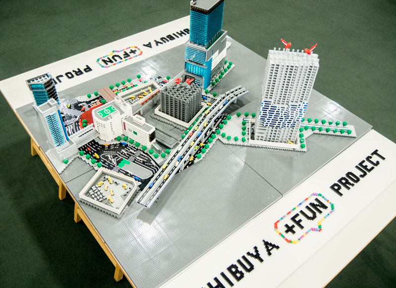 変わりつつある渋谷の街を切り取ったレゴ(R)ブロックの街並み。実際の街が変化したら、それに合わせてレゴの街並みも変えていく予定だそうだ。