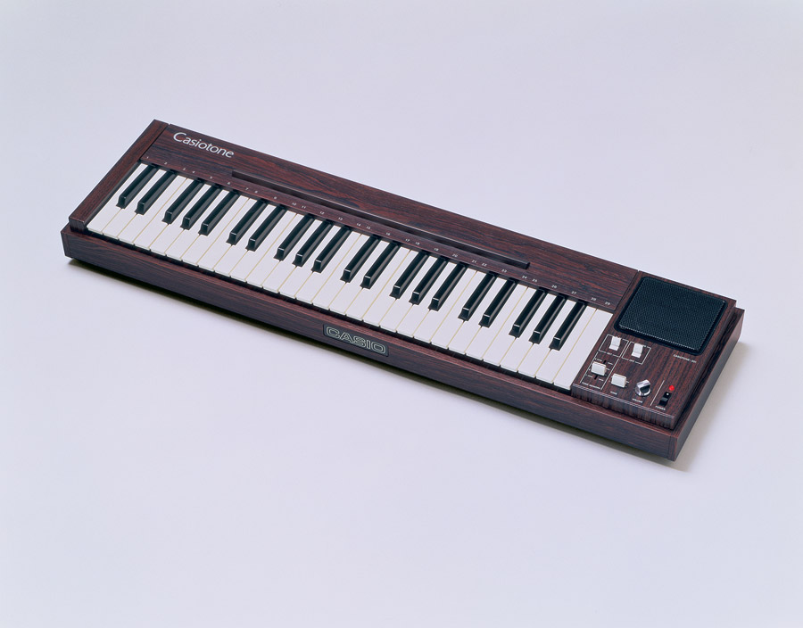 そして1980(昭和55)年、最初に発売した電子楽器が、キーボードの「カシオトーン」だ。子音・母音システムという独自の音源技術で、ピアノだけでなくギターやトランペットなど29種類の楽器の音色を再現できる画期的な商品だ。