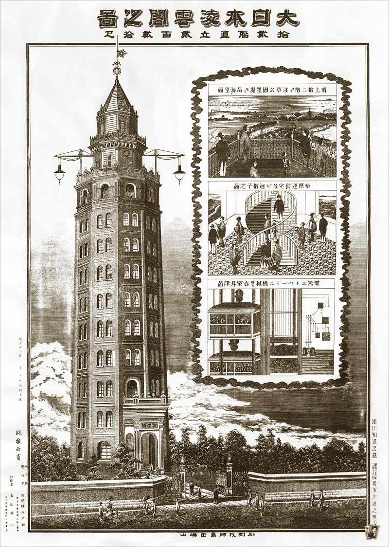 舞台となったのは、こちらも日本で最初の高層建築として注目を浴びていた東京・浅草の凌雲閣(りょううんかく)。高さ66m、12階建ての造りの塔だった。