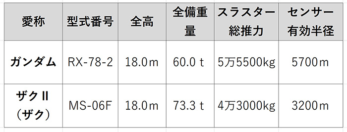 こうしてみると、両者の性能差は明らかだ。ジオン公国軍が「白いモビルスーツ」と呼んで警戒していたのもうなずける。