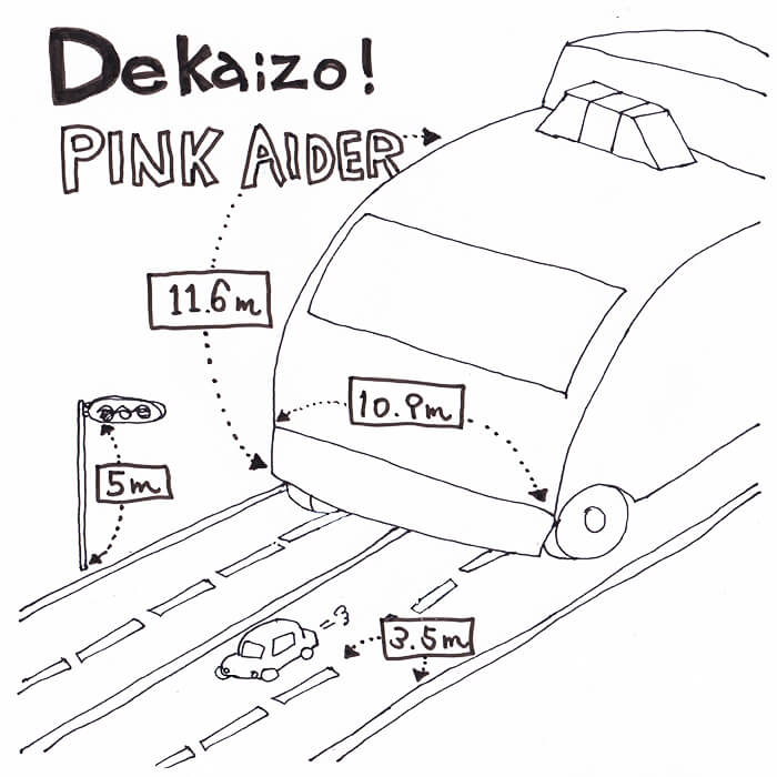 片側1車線の一般道路なら、さらに悲惨だ。ピンクエイダーは車体の左右を道路そのものからハミ出して、沿道の民家やビルを押しひしぎながら突っ走るしかない。