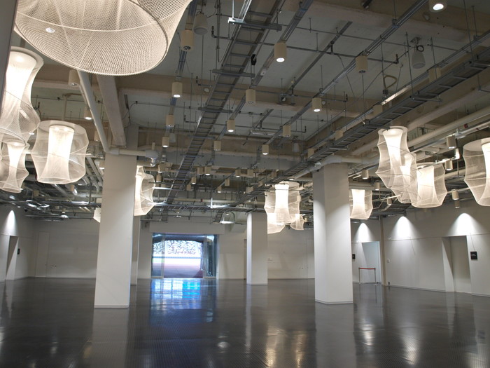 選手らが通るフィールドの出入口「フラッシュインタビューゾーン」。あんどんをイメージした照明がつり下げられ、落ち着いた空間に