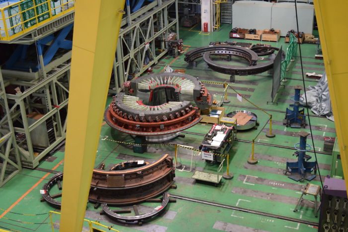室内の広さの問題もあり、ガスタービンの全貌を見ることができなかったが、しかし少し想定していたイメージと違った。組立現場で見たむき出しの鉄感がない。