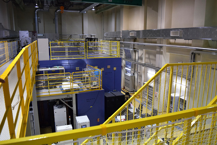 そのため、52mという長いビームラインが必要であったのだが、あまりにも長いために既存の実験施設に収まりきらず、新しい建物を増設してこの装置は設置された。