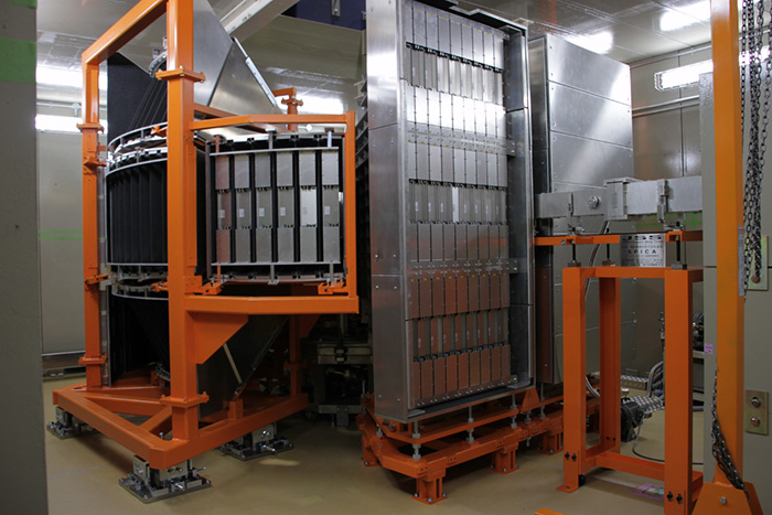 大きな稼動音を想定していたが、物音はほとんどしない。装置を内包する青い外壁の周囲には、大型計算機が置かれ、稼働中は全ての観測データを自動で蓄積しているという。