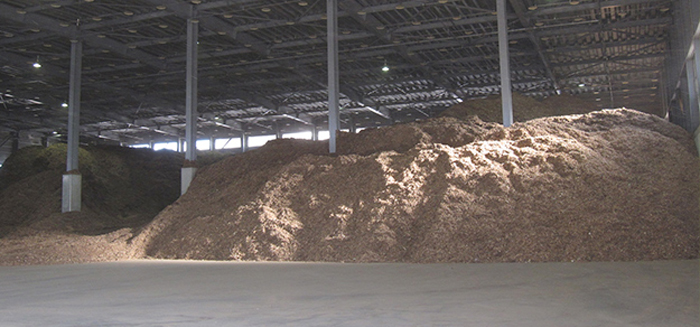 そして、チップヤード(図9)には最大6000t(約10日分)のチップ燃料を保管できます。圧巻ですね。