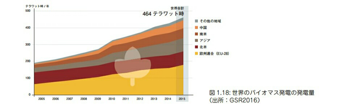 そのうちバイオマス発電は2%ですが、伸び率を見ると2005年からの10年で2倍以上増加しています。
