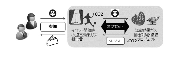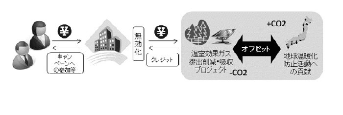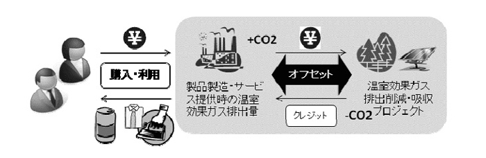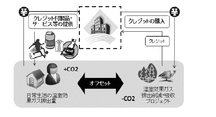生産者、サービス提供者またはイベント主催者等が、製品・サービスやチケットにクレジットを付け、製品・ サービスの購入者やイベントの来場者等の日常生活に伴う温室効果ガス排出量の埋め合わせを支援する取り組み。