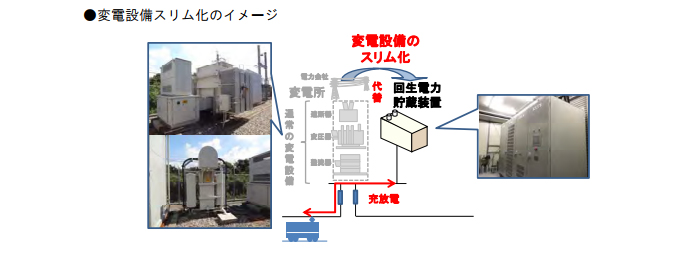 まず、JR東日本の「変電設備スリム化」の取り組みです。列車位置情報を用いて蓄電池の充放電制御を効率的に行うエネルギーマネジメントシステムを構築するというもので、10月から実証実験を開始します(図3)。 列車に電気を供給する変電所の設備を「回生電力貯蔵装置」に置き換えることで、設備のスリム化とメンテナンスの省力化を図るという発想に可能性を感じます。