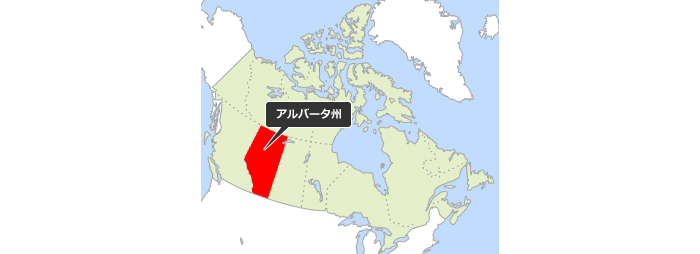 このオイルサンド、確認埋蔵量が最大の地域は世界第2位の国土面積を誇るカナダのアルバータ州です(図1)。BP Statistical Review of World Energy 2017によれば、カナダの石油確認埋蔵量は 1,715 億 バレル で、約 94%(約 1,615 億 バレル)をオイルサンドが占めるとされています。