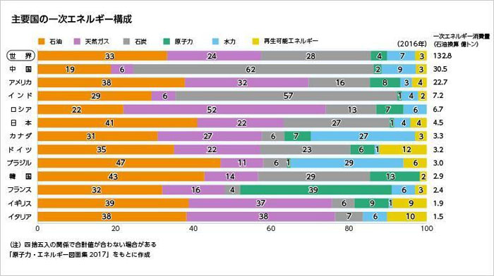 主要国の一次エネルギー構成