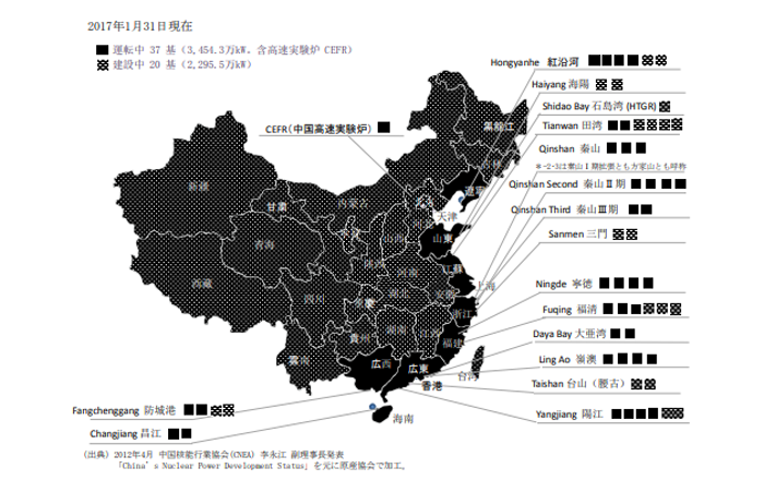 中国の原子力発電所所在地